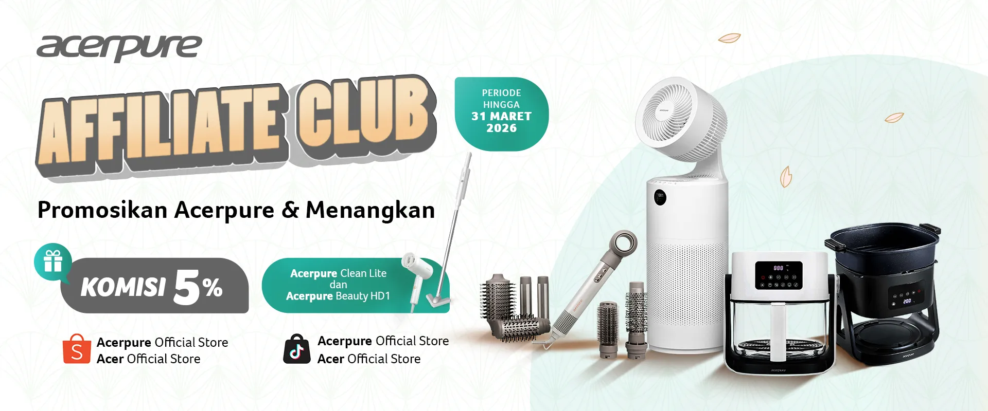 Ingin penghasilan tambahan dengan cara yang mudah dan tanpa modal? Bergabunglah dengan Acerpure Affiliate Club dan raih kesempatan cuan dari setiap produk Acerpure yang terjual di Shopee dan TikTok Shop. Siapa pun bisa ikut serta, baik content creator, pelanggan setia, maupun masyarakat umum. Cukup bagikan link produk dan dapatkan komisi dari setiap penjualan. Semakin banyak yang membeli melalui link kamu, semakin besar penghasilannya.