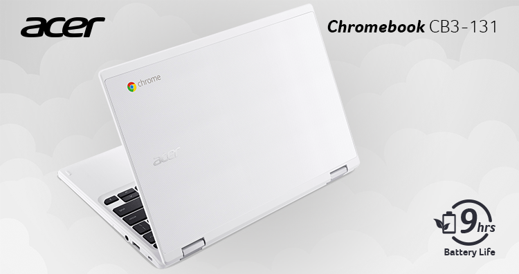 Jajaran Chromebook terbaru dari Acer, yaitu Acer Chromebook CB3-131, dapat memenuhi segala kebutuhan Anda. Acer Chromebook CB3-131 adalah alternatif terbaik untuk pendukung kegiatan selama bekerja maupun hiburan karena Chromebook ini menawarkan kecepatan dan responsivitas kerja yang baik. Laptop ini juga turut mengedepankan mobilitas dan portabilitas.