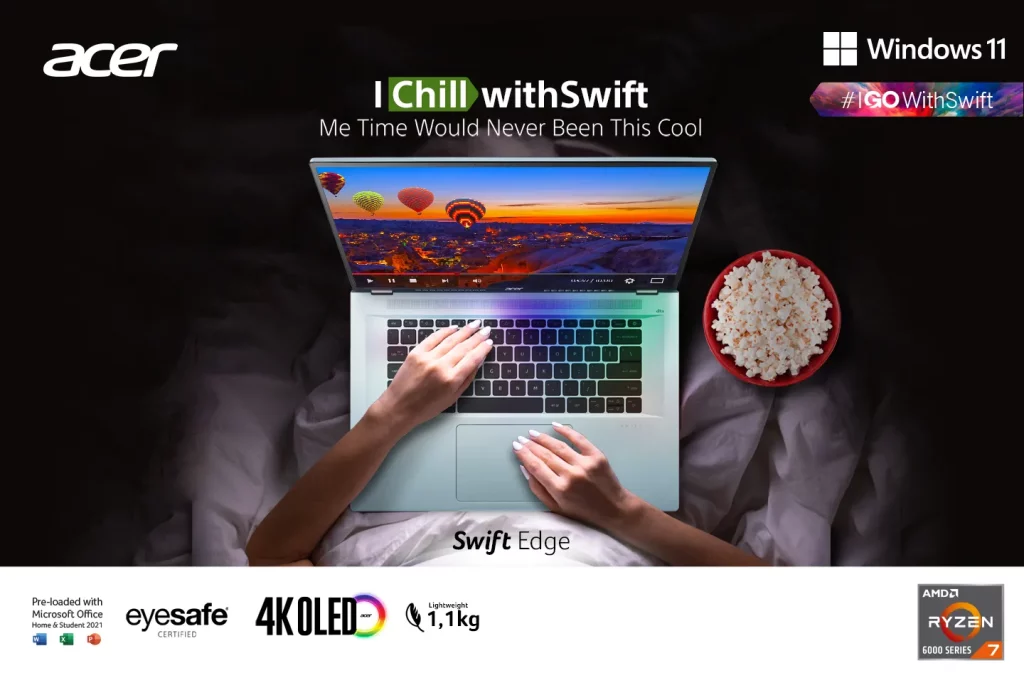 Acer meluncurkan produk baru dari lini Swift Series yakni Acer Swift Edge, laptop dengan layar OLED 16 inci paling ringan di dunia, setipis 12,95mm dengan bobot hanya 1,17 kg. Laptop yang menggunakan sasis berbahan magnesium-aluminium membuat mobilitas bersama Swift Edge jadi lebih mudah.