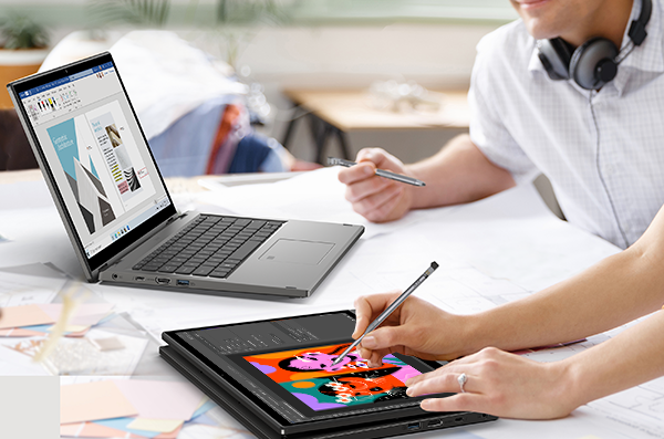 Laptop dengan desain 2-in-1 atau convertible merupakan pilihan paling tepat untuk profesi penggiat seni seperti ilustrator dan desainer grafis. Sebab, laptop ini sudah pasti hadir dengan fitur layar sentuh serta dukungan penggunaan stylus yang telah tersertifikasi Wacom. Dengan fitur tersebut, para ilustrator pun dapat mengubah perangkatnya menjadi kanvas digital yang sangat portabel. Berkarya pun bisa dilakukan di mana saja dan kapan saja.