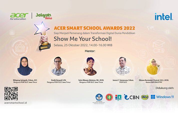 Pada 25 Oktober 2022, pukul 14.00 - 16.00 WIB telah diadakan pembekalan teknis peserta Acer Smart School Awards 2022 yang keempat dengan topik “Show Me Your School!” yang disampaikan oleh Bapak James F. Tomasouw, S.Kom., pada pembekalan teknis kali ini, peserta ASSA menunjukkan fasilitas yang terdapat di area sekolahnya masing-masing. Beberapa sekolah tersebut diantaranya: