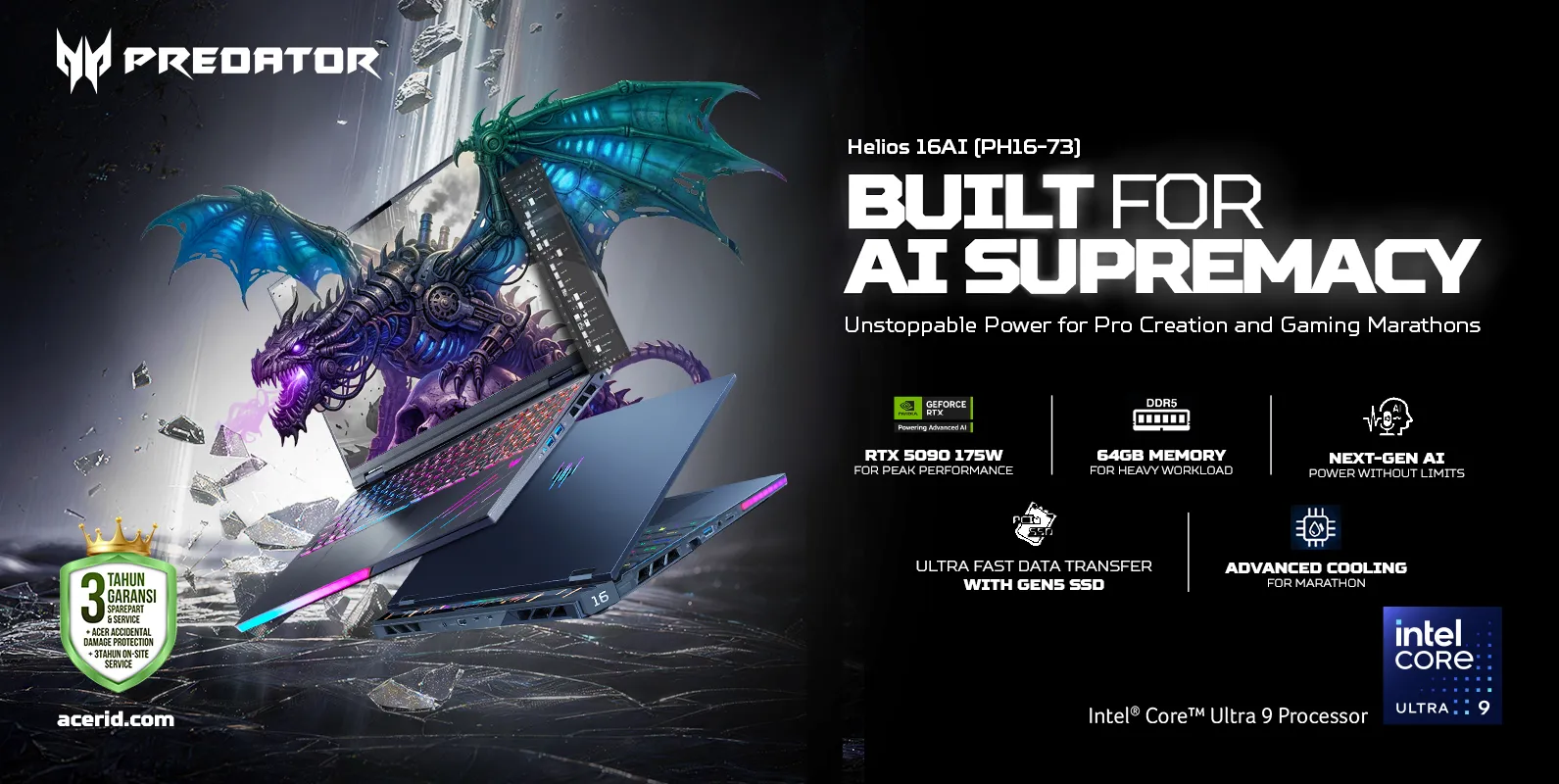 Jelajahi seluruh lini Predator Gaming—mulai dari Predator Helios, Triton, Orion, hingga series terbaru lainnya. Ditenagai teknologi kelas atas untuk performa maksimal, visual imersif, dan pengalaman gaming kompetitif di setiap level.